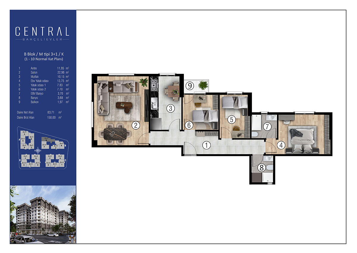 Ulaşım noktalarına, hastanelere, üniversitelere ve AVM'lere yakın konumda bulunan Central Bahçelievler; İstanbul'un tüm olanaklarından faydalanmak isteyen kişilerin ihtiyaçlarını karşılayacak şekilde dizayn edildi.
